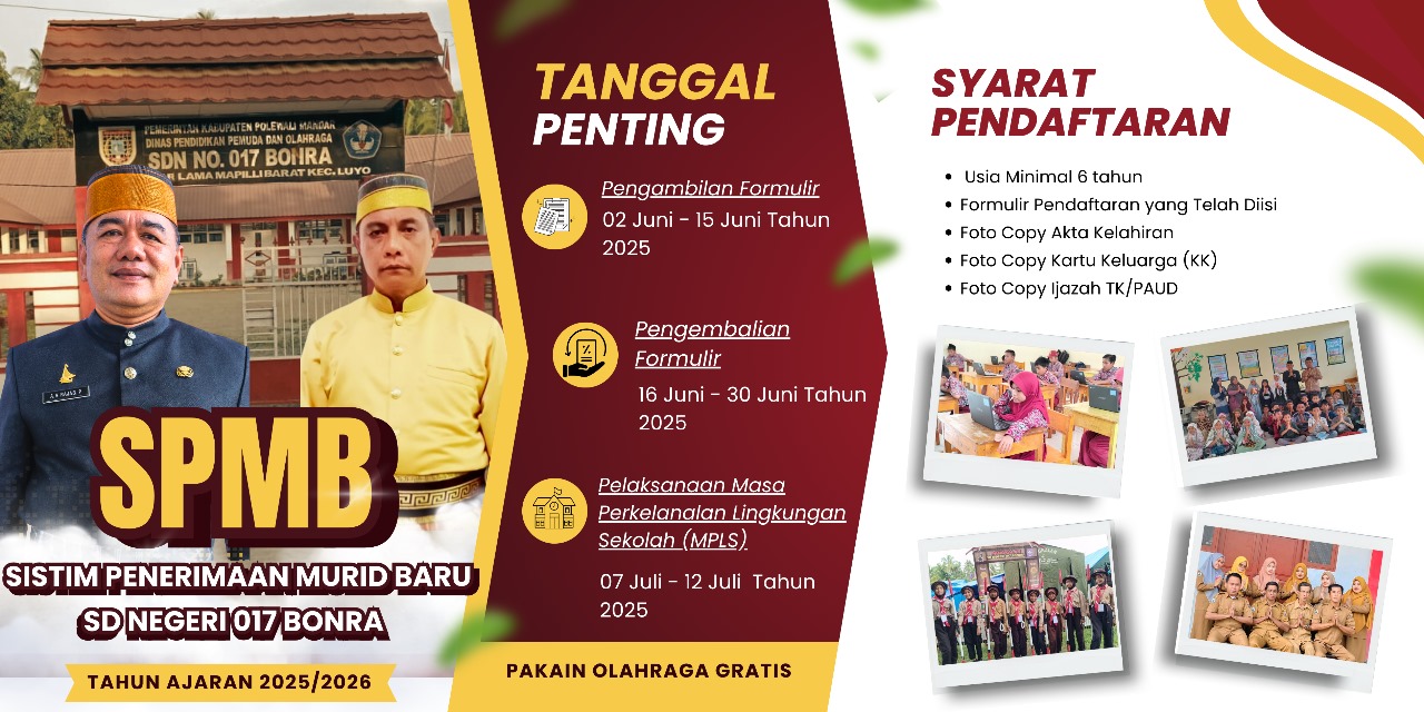 SPMB Page SISTEM PENERIMAAN MURID BARU 2025/2026 Guru Berkompenten PelayananOptimal FasilitasLengkap Download Formulir SPMB Web Sekolah by dinasdikbud.polmankab.go.id © All rights reserved.